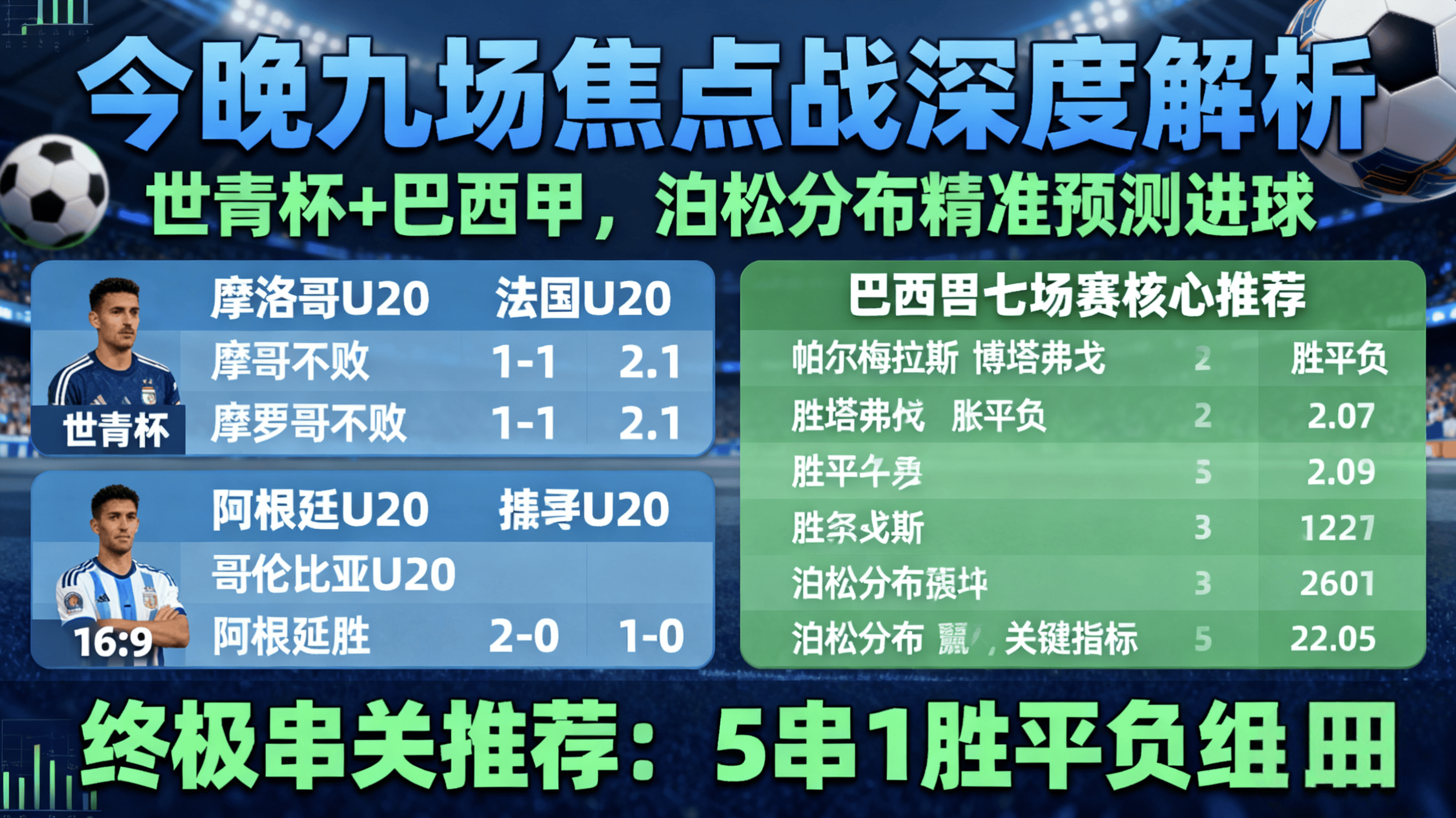 USDT Casino - 全球热门USDT游戏娱乐平台,安全稳定,极速出款(访问363050.com 领取888USDT)今晚足球盛宴重磅来袭!世青杯半决赛激战正酣,巴西甲级联赛多场对决同步上演。我们结合最新盘口变化、凯利指数和球队基本面,通过泊松分布模型计算进球概率,为你带来最专业的赛事前瞻。