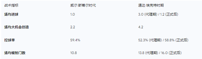 埃克特接手后,采取了更为温和且理性的“现代控球式”策略。他将重心从无球时的疯狂奔跑转移到了有球时的节奏控制。根据数据显示,埃克特执教下的南安普敦在进攻端效率显著提升,场均创造的“大机会”从2.2次增加到4.2次,而防守端的脆弱性通过阵型的回撤和四后卫体系的巩固得到了有效缓解 。